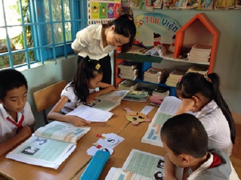 Cô giáo: Nguyễn Thị Mỹ Hạnh đang hỗ trợ cho học sinh. Ảnh: Ngọc